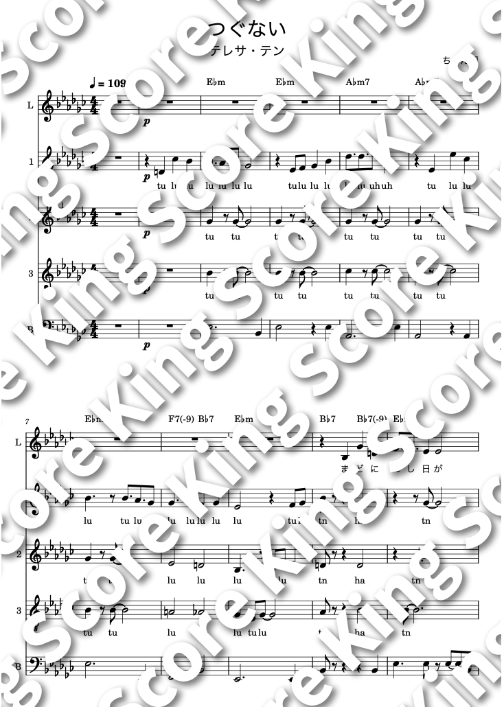 ボイパなしの5声編成です。間奏は3rdが聴かせどころになっています♪
