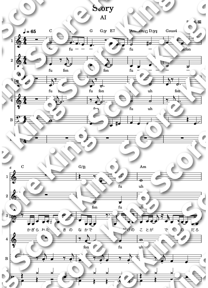 AIさんの名曲です。コーラス4人でリードが入れ替わる編成です。転調後の大サビは、リズムや音を変えてアクセントにしています。エモーショナルに歌ってみてください♪