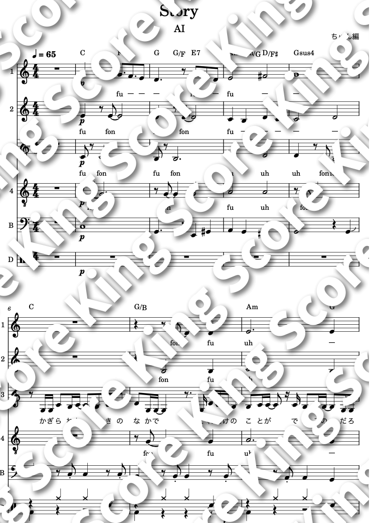 | パート | 1st Chorus:女性 2nd Chorus:女性 3rd Chorus:女/男性 4th Chorus :男性 Bass:男性 Perc.:男/女性 |