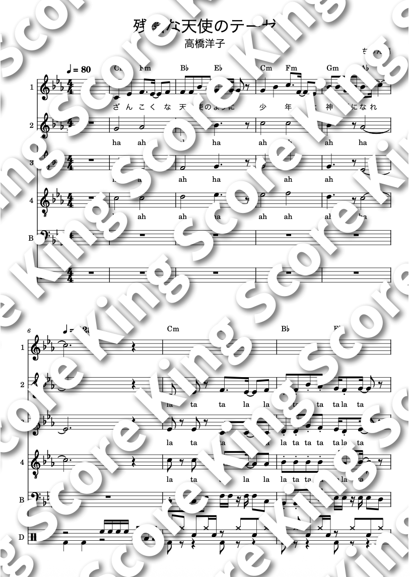 | パート | 1st Chorus:女性 2nd Chorus:女性 3rd Chorus:女性 4th Chorus:男性 Bass:男性 Perc.:男/女性 |