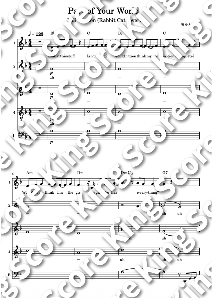 ディズニー映画『リトル・マーメイド』の劇中歌である本曲、Rabbit Cat様の採譜をしてみました。信じられないくらい豊かな響きが素敵なので、ぜひRabbit Cat様の動画をたくさん聞きながら歌ってみてください♪